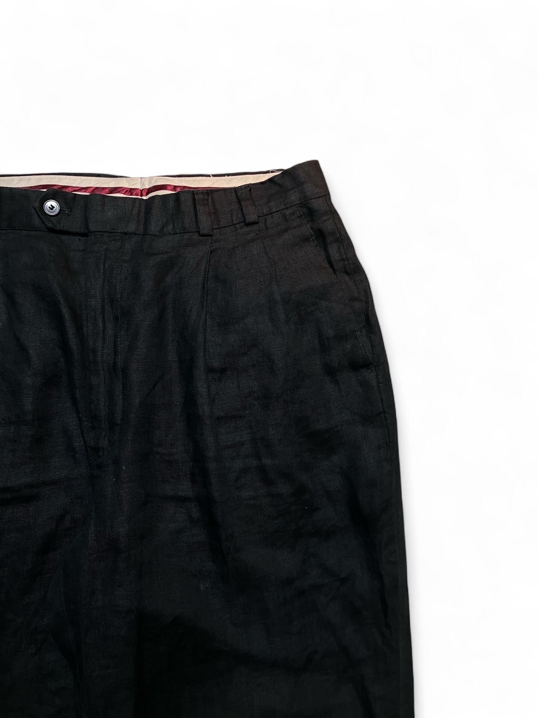 Luis Raphael 100% Linen Black Tuck Trousers