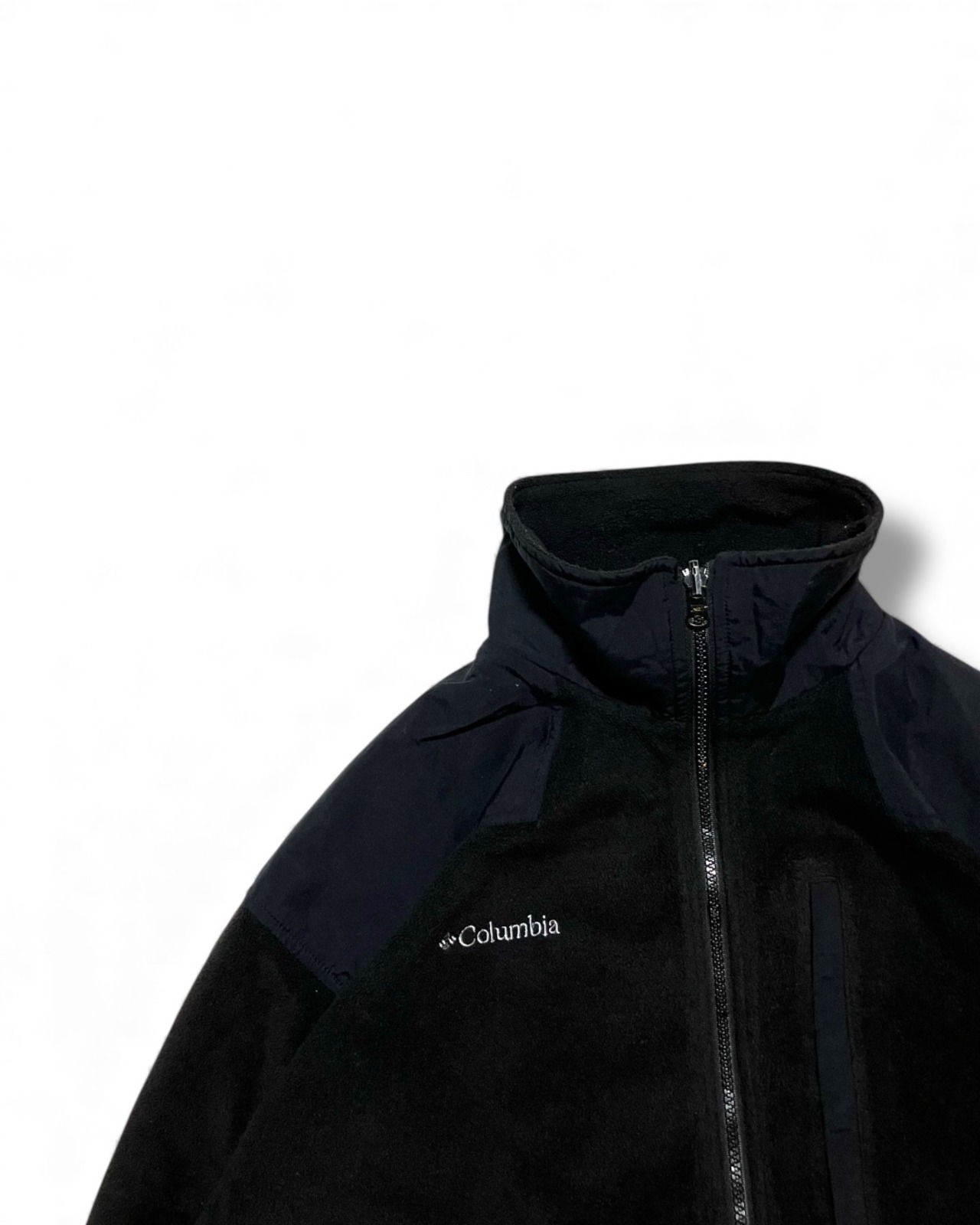 向かって右下にあるOmni Stopのカラー刺繍もこの黒フリースと相性が抜群に良いすね。
