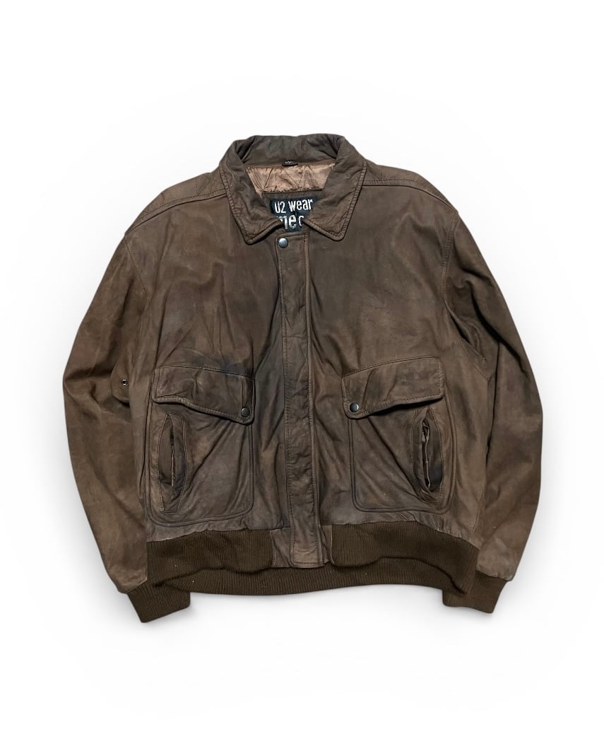 U2 Wear Me Out Brown Leather Bomber Jacket
