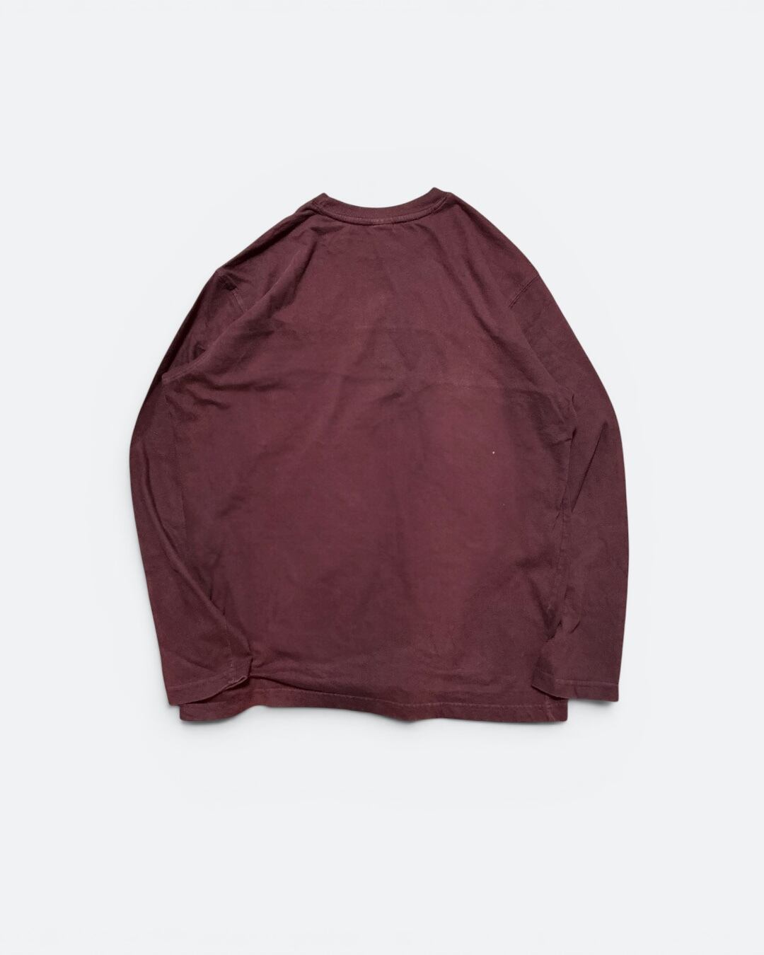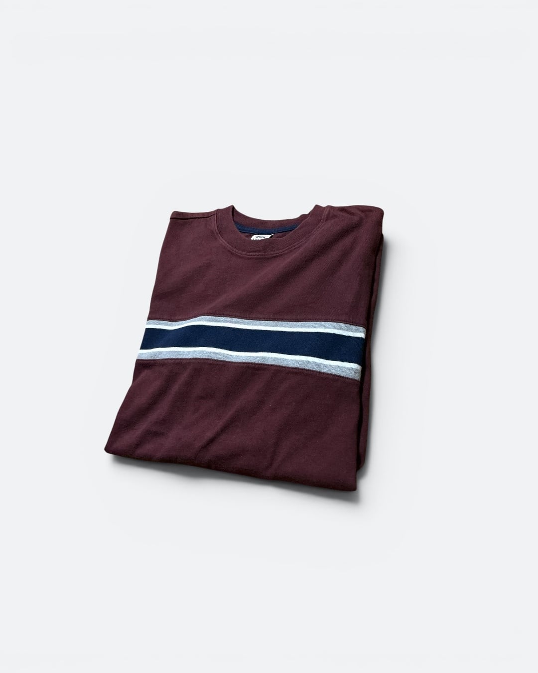 バーガンディのボディの胸元にはグレーとネイビーのパネル切り替え。