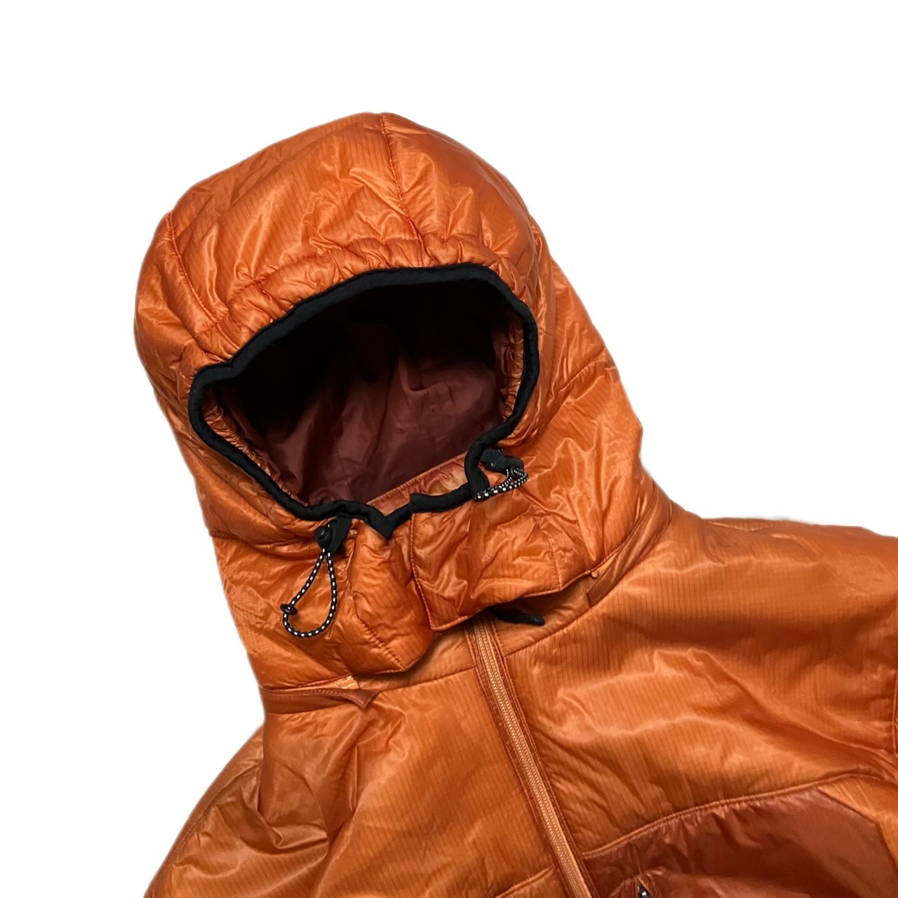 首元と裾にはドローコード。フードかぶって、ドローコードをぎゅっと締めれば、上からも下からも風を防げる最強の防寒ジャケットの完成。